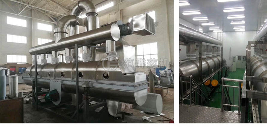 2、該生產(chǎn)線的核心部分:干燥系統(tǒng)。采用分段加熱的方式,預(yù)干燥段采用高壓低風(fēng)量風(fēng)機(jī),使較濕的雞精顆粒能完全流化;干燥段采用低壓高風(fēng)量的風(fēng)機(jī),單位時(shí)間內(nèi)帶走水份多,干燥均勻;冷卻段采用高風(fēng)量風(fēng)機(jī),能迅速帶走熱量,降低產(chǎn)品溫度,既達(dá)到水分控制的要求,又方便后續(xù)包裝工藝。